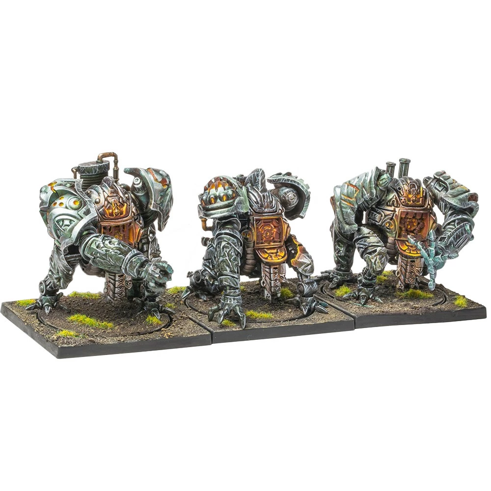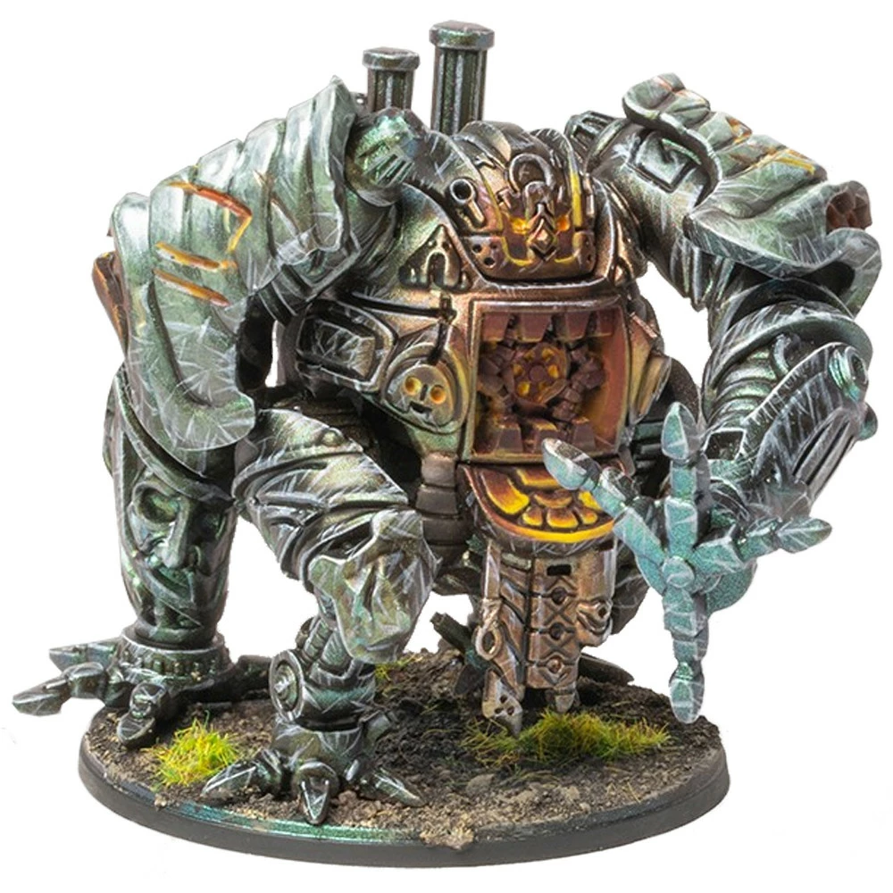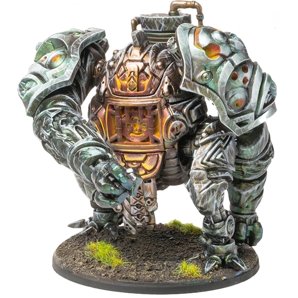 Some Dweghom manifest so much of their Elemental Gift, they must master it or be consumed by it. Few Have the skill, will or dedication needed to become Sorcerers. In fact, most Dweghom elect to install techno sorcerous grafts that allow them to harmlessly vent their excess power. Steelforged pilots are recruited from amongst these individuals who possess a Gift for both Elements: their excess Primordial Fire and Earth channeled through their grafts and into these towering steel automata. Countless foes have been cut down expecting a lumbering clanking behemoth, only to be confounded by the speed and power of these deadly automata.