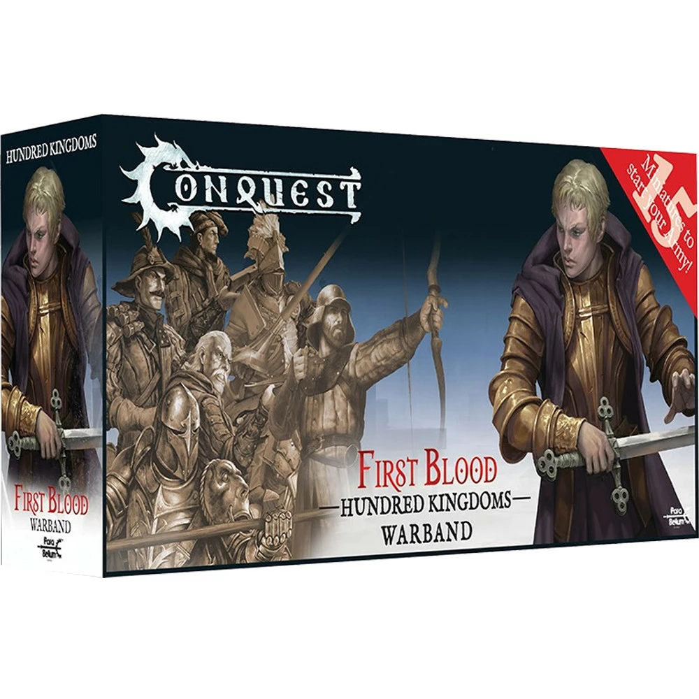 Your Hundred Kingdoms First Blood Warband has a squad of Gilded Legions, Hunter Cadre and Militia Bowmen, a Household Knight, a Noble Lord and the Errant Order for the Shield for the officer. This boxed set also comes with a First Blood II Rulebook, along with the bases and stands for each of the figures, First Blood Start Play Guide and Assembly Instructions. While this is a perfect Warband to start your First Blood play, these figures are also ready to grow up in to the Last Argument of Kings mass fantasy battle game.