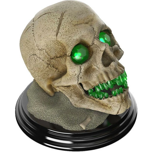 Like so many of its ilk, this unliving replica draws its inspiration from the infamous Acererak, complete with carved gemstones replacing its teeth and larger gems (lit by LEDs) set in its eye sockets. Whether resting comfortably atop a pile of its own bones and dust or rising from its display on a vortex of its moldering remains, the Demilich will draw attention (but not the life force) of intruders and admirers alike.