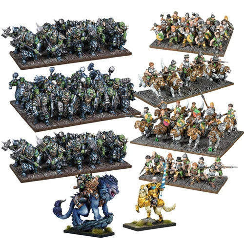This starter set contains two great starter armies for Kings of War; the stout Halflings and the Twisted Riftforged Orcs; a book with the full game rules and complete army lists for 14 different factions, plus a getting started booklet to help you with your first games.