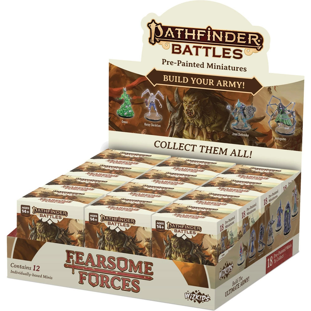 Marshal your armies with the new Pathfinder Battles: Fearsome Forces miniatures set! Plague your players with packs of murderous kholos, swarms of undead, and crowds of venomous serpentfolk. This set has what you need to assemble groups of monstrous foes to face the heroes and adventurers of your tabletop game!