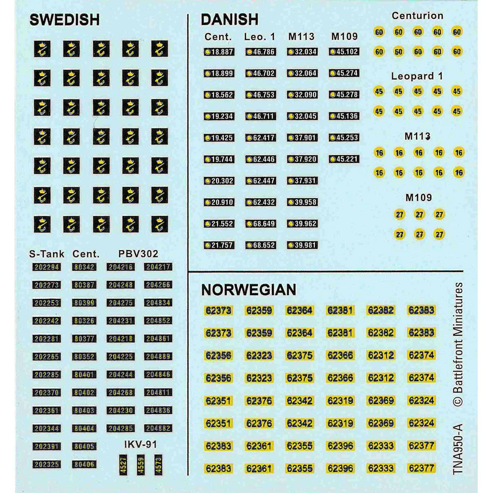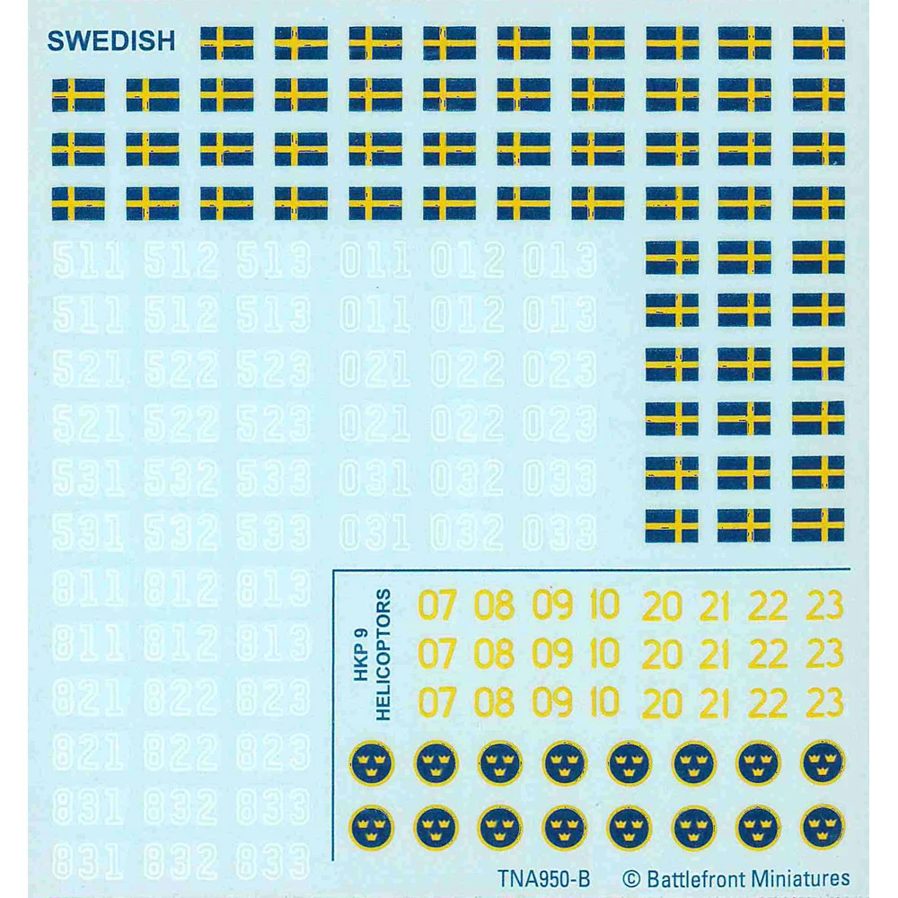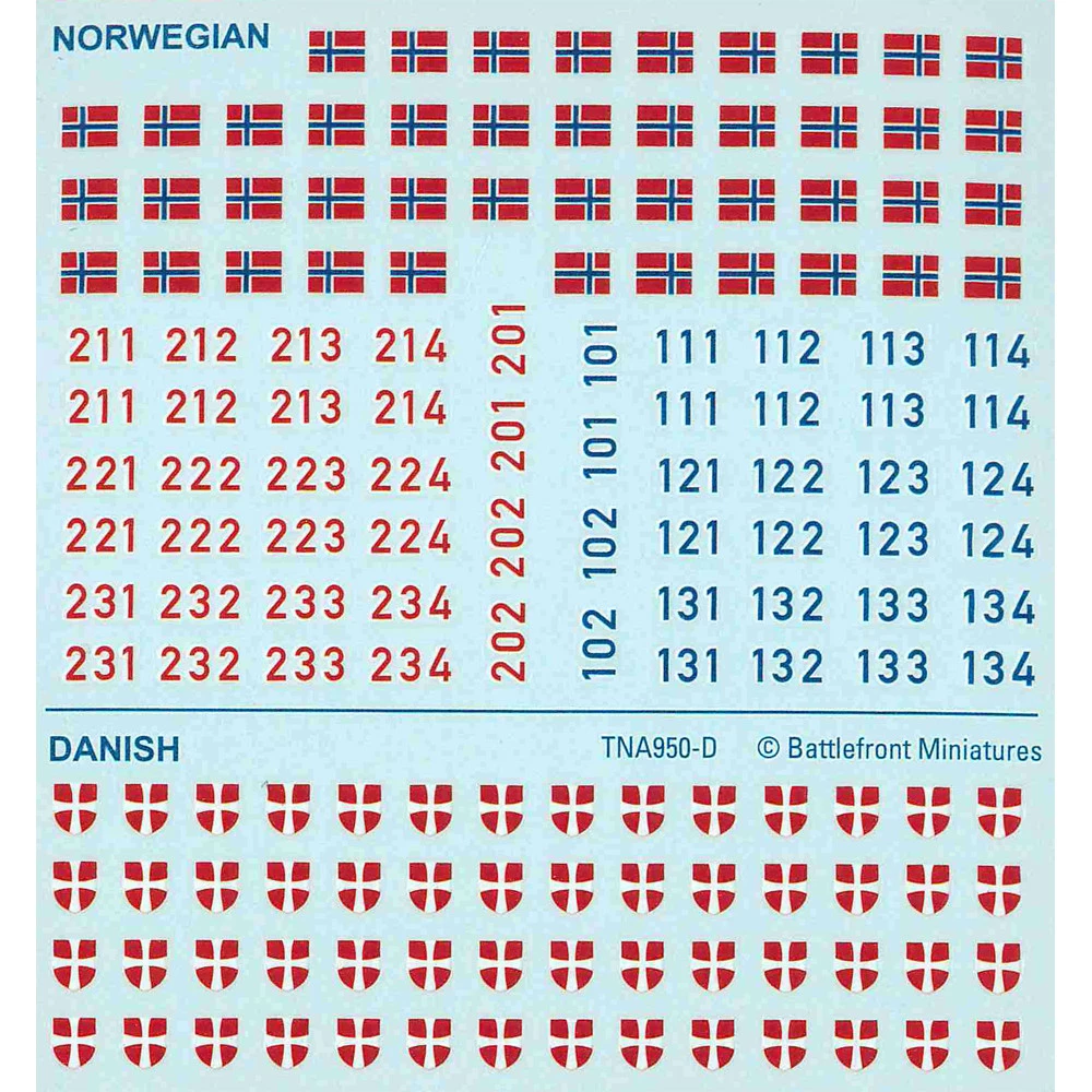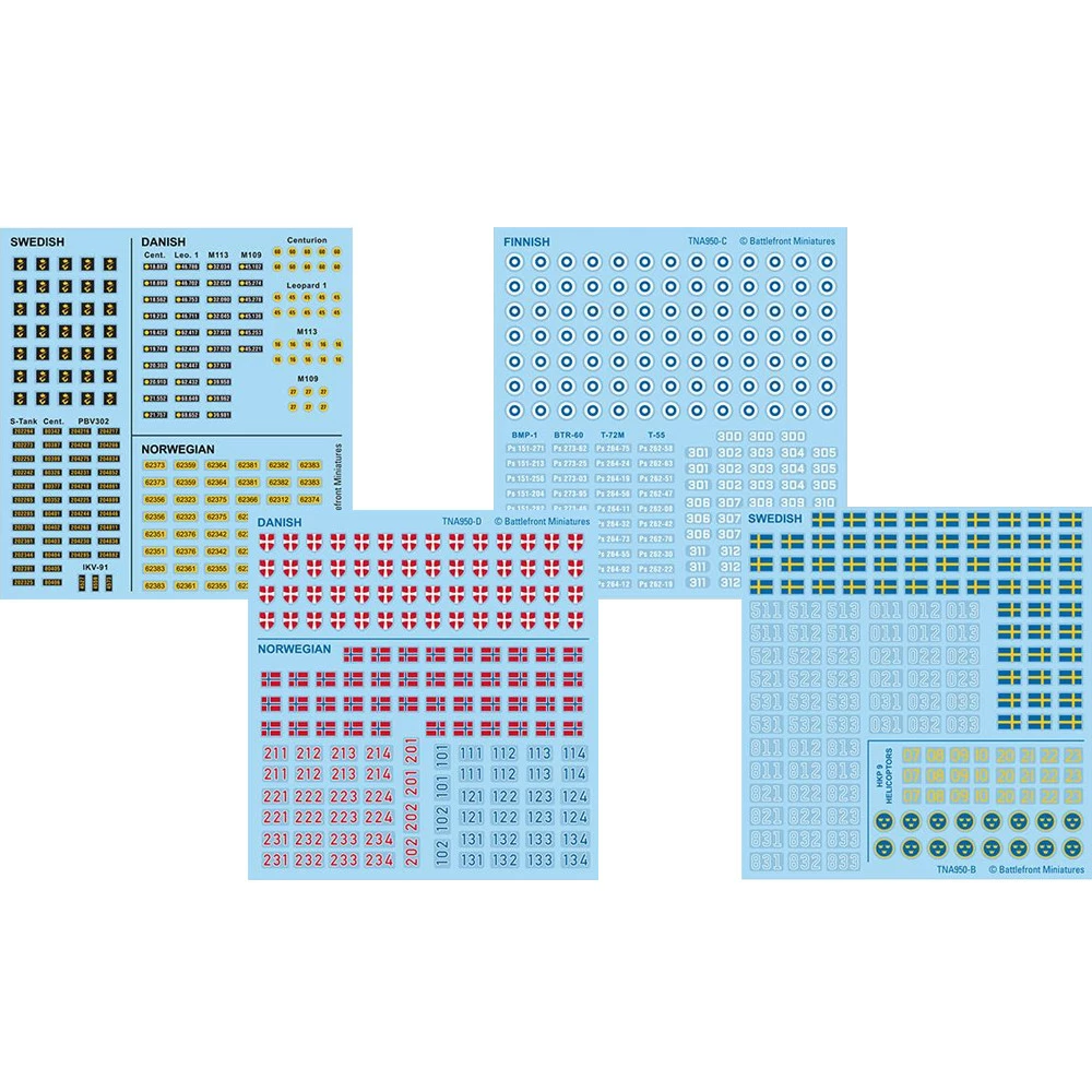 Decals for your Swedish, Finnish, Danish, and Norwegian troops.
